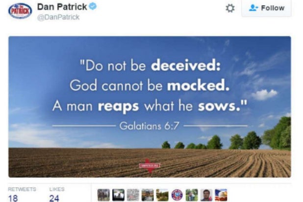 Texas Lt Gov Dan Patrick Explains Reap What You Sow Tweet After Gay Club Massacre